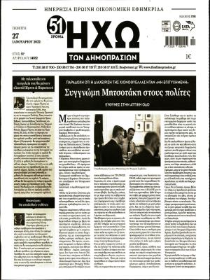 ΚεντρικήΚοινωνικάΠρωτοσέλιδα εφημερίδων by xristiana27 Ιανουαρίου 202227 Ιανουαρίου 20220377 Share00 27/1/2022 Πολιτικές ΑΥΓΗ ΔΗΜΟΚΡΑΤΙΑ ΕΛΕΥΘΕΡΗ ΩΡΑ ΕΛΕΥΘΕΡΟΣ ΤΥΠΟΣ ΕΣΤΙΑ ΚΑΘΗΜΕΡΙΝΗ Ο ΛΟΓΟΣ ΡΙΖΟΣΠΑΣΤΗΣ ΤΑ ΝΕΑ ΤΟ ΠΟΝΤΙΚΙ ΤΩΝ ΣΥΝΤΑΚΤΩΝ Οικονομικές ΕΦΗΜΕΡΙΣ ΔΗΜΟΠΡΑΣΙΩΝ ΚΑΙ ΠΛΕΙΣΤΗΡΙΑΣΜΩΝ ΗΧΩ ΔΗΜΟΠΡΑΣΙΩΝ ΝΑΥΤΕΜΠΟΡΙΚΗ Αθλητικές LIVE SPORT SPORTDAY SPORTIME ΠΡΩΤΑΘΛΗΤΗΣ ΦΩΣ ΤΩΝ ΣΠΟΡ ΩΡΑ ΓΙΑ ΣΠΟΡ Lifestyle ESPRESSO Θεσσαλονίκης ΤΥΠΟΣ ΘΕΣ/ΝΙΚΗΣ