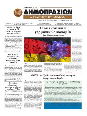 ΚεντρικήΚοινωνικάΠρωτοσέλιδα εφημερίδων by xristiana31 Ιανουαρίου 202231 Ιανουαρίου 20220397 Share00 31/1/2022 Πολιτικές ΔΗΜΟΚΡΑΤΙΑ ΕΛΕΥΘΕΡΗ ΩΡΑ ΕΛΕΥΘΕΡΟΣ ΤΥΠΟΣ ΕΣΤΙΑ ΡΙΖΟΣΠΑΣΤΗΣ ΤΑ ΝΕΑ ΤΩΝ ΣΥΝΤΑΚΤΩΝ Οικονομικές ΕΦΗΜΕΡΙΣ ΔΗΜΟΠΡΑΣΙΩΝ ΚΑΙ ΠΛΕΙΣΤΗΡΙΑΣΜΩΝ ΝΑΥΤΕΜΠΟΡΙΚΗ Αθλητικές LIVE SPORT SPORTDAY SPORTIME ΠΡΩΤΑΘΛΗΤΗΣ ΦΩΣ ΤΩΝ ΣΠΟΡ ΩΡΑ ΓΙΑ ΣΠΟΡ Lifestyle ESPRESSO