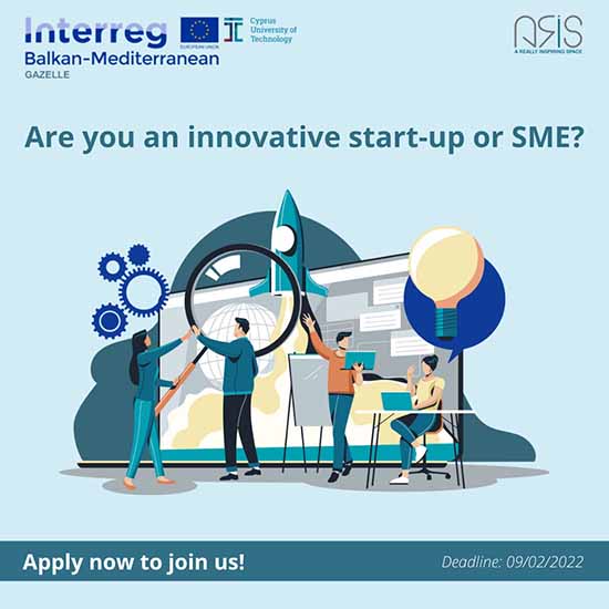 Το Τεχνολογικό Πανεπιστήμιο Κύπρου (ΤΕΠΑΚ), σε συνεργασία με τον επιταχυντή ARIS (A Really Inspiring Space), προσκαλεί τις καινοτόμες νεοφυείς επιχειρήσεις/ ΜΜΕ να υποβάλουν αίτηση για το πρόγραμμα Επιτάχυνσης που θα εφαρμοστεί στην Κύπρο στο πλαίσιο του χρηματοδοτούμενου από την ΕΕ έργου «Οργάνωση επιτάχυνσης για καινοτόμες ΜΜΕ με ψηλό δυναμικό-(Gazelle)».