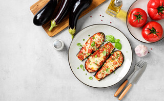 - 2 μεγάλες μελιτζάνες, κομμένες κατά μήκος