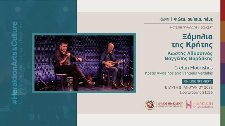 Μετά την πρωτοχρονιά, όπου ο Δήμος Ηρακλείου καλωσόρισε το 2022 με μουσικές επιλογές από παραστάσεις που είχαν προβληθεί στο κανάλι με σημαντικά ονόματα της κρητικής και της ελληνικής μουσικής σκηνής (Κωστής Αβυσσινός, Βασίλης Σταυρακάκης, Διονύσης Τσακνής, Χρήστος Νικολόπουλος – Κώστας Μακεδόνας κ.ά – δείτε εδώ: https://bit.ly/3pNbnys), ο πρώτος μήνας του χρόνου περιλαμβάνει επίσης πολύ ενδιαφέρουσες προτάσεις.