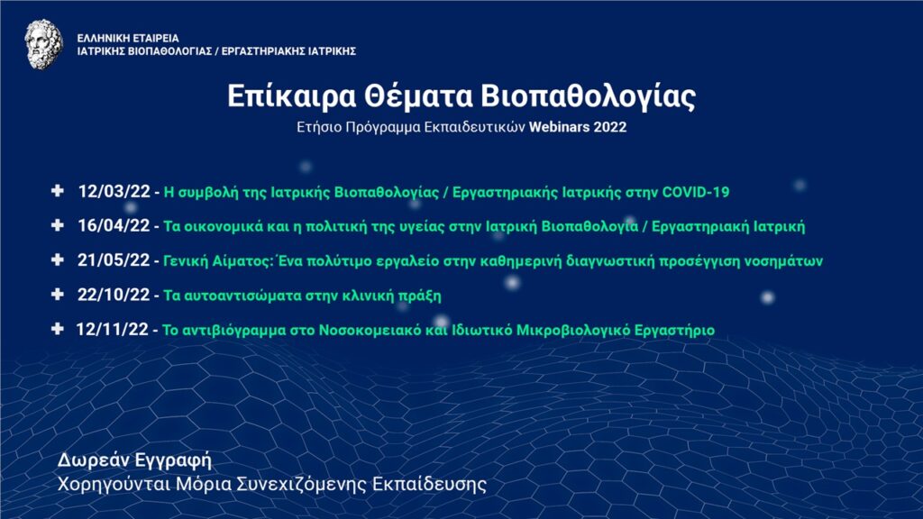 ΚεντρικήΚοινωνικάΕπίκαιρα Θέματα Βιοπαθολογίας – Ετήσιο Πρόγραμμα Εκπαιδευτικών Webinars 2022 by xristiana20 Φεβρουαρίου 202220 Φεβρουαρίου 20220382 Share00 20/2/2022 Πηγή: https://www.livemedia.gr