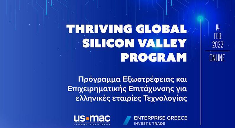 Το φετινό Πρόγραμμα με τίτλο «Thriving Global Silicon Valley Program» θα υλοποιηθεί σε συνεργασία με τον Οργανισμό USMAC (US Market Access Centre) και με εμπειρογνώμονες από τη Silicon Valley. Ο Οργανισμός US-MAC δραστηριοποιείται από το 1995, παρέχοντας σε εταιρείες τεχνολογίας, ταχεία και επιτυχημένη πρόσβαση στην παγκόσμια αγορά µέσω της Silicon Valley.