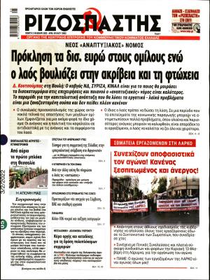 ΚεντρικήΚοινωνικάΠρωτοσέλιδα εφημερίδων by xristiana3 Φεβρουαρίου 20223 Φεβρουαρίου 20220525 Share00 3/2/2022 Πολιτικές ΑΥΓΗ ΔΗΜΟΚΡΑΤΙΑ ΕΛΕΥΘΕΡΗ ΩΡΑ ΕΛΕΥΘΕΡΟΣ ΤΥΠΟΣ ΕΣΤΙΑ ΚΑΘΗΜΕΡΙΝΗ Ο ΛΟΓΟΣ ΡΙΖΟΣΠΑΣΤΗΣ ΤΑ ΝΕΑ ΤΟ ΠΟΝΤΙΚΙ ΤΩΝ ΣΥΝΤΑΚΤΩΝ Οικονομικές ΕΦΗΜΕΡΙΣ ΔΗΜΟΠΡΑΣΙΩΝ ΚΑΙ ΠΛΕΙΣΤΗΡΙΑΣΜΩΝ ΗΧΩ ΔΗΜΟΠΡΑΣΙΩΝ ΝΑΥΤΕΜΠΟΡΙΚΗ Αθλητικές LIVE SPORT SPORTDAY SPORTIME ΠΡΩΤΑΘΛΗΤΗΣ ΦΩΣ ΤΩΝ ΣΠΟΡ ΩΡΑ ΓΙΑ ΣΠΟΡ Lifestyle ESPRESSO Free press ATHENS VOICE Θεσσαλονίκης ΤΥΠΟΣ ΘΕΣ/ΝΙΚΗΣ