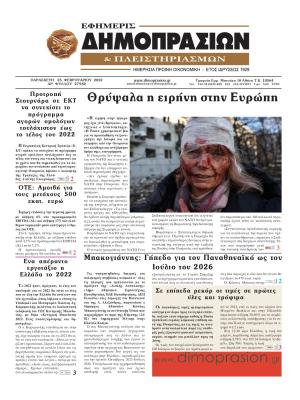 ΚεντρικήΚοινωνικάΠρωτοσέλιδα εφημερίδων by xristiana25 Φεβρουαρίου 202226 Φεβρουαρίου 20220376 Share00 25/2/2022 Πολιτικές ΑΥΓΗ ΔΗΜΟΚΡΑΤΙΑ ΕΛΕΥΘΕΡΗ ΩΡΑ ΕΛΕΥΘΕΡΟΣ ΤΥΠΟΣ ΕΣΤΙΑ ΚΑΘΗΜΕΡΙΝΗ Ο ΛΟΓΟΣ ΡΙΖΟΣΠΑΣΤΗΣ ΤΑ ΝΕΑ ΤΩΝ ΣΥΝΤΑΚΤΩΝ Οικονομικές DEAL NEWS ΕΦΗΜΕΡΙΣ ΔΗΜΟΠΡΑΣΙΩΝ ΚΑΙ ΠΛΕΙΣΤΗΡΙΑΣΜΩΝ ΗΧΩ ΔΗΜΟΠΡΑΣΙΩΝ ΜΕΤΟΧΟΣ ΝΑΥΤΕΜΠΟΡΙΚΗ Αθλητικές LIVE SPORT SPORTDAY SPORTIME ΠΡΩΤΑΘΛΗΤΗΣ ΤΟ ΣΤΟΙΧΗΜΑ ΦΩΣ ΤΩΝ ΣΠΟΡ ΩΡΑ ΓΙΑ ΣΠΟΡ Lifestyle ESPRESSO Θεσσαλονίκης ΤΥΠΟΣ ΘΕΣ/ΝΙΚΗΣ