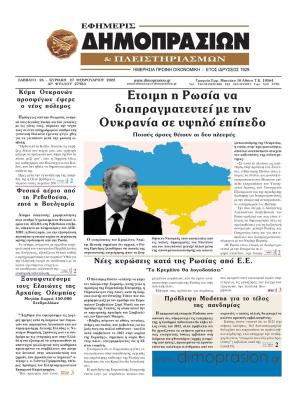 ΚεντρικήΚοινωνικάΠρωτοσέλιδα εφημερίδων by xristiana28 Φεβρουαρίου 202228 Φεβρουαρίου 20220362 Share00 28/2/2022 Πολιτικές ΔΗΜΟΚΡΑΤΙΑ ΕΛΕΥΘΕΡΗ ΩΡΑ ΕΛΕΥΘΕΡΟΣ ΤΥΠΟΣ ΕΣΤΙΑ ΡΙΖΟΣΠΑΣΤΗΣ ΤΑ ΝΕΑ ΤΩΝ ΣΥΝΤΑΚΤΩΝ Οικονομικές ΕΦΗΜΕΡΙΣ ΔΗΜΟΠΡΑΣΙΩΝ ΚΑΙ ΠΛΕΙΣΤΗΡΙΑΣΜΩΝ ΝΑΥΤΕΜΠΟΡΙΚΗ Αθλητικές LIVE SPORT SPORTDAY SPORTIME ΠΡΩΤΑΘΛΗΤΗΣ ΦΩΣ ΤΩΝ ΣΠΟΡ ΩΡΑ ΓΙΑ ΣΠΟΡ Lifestyle ESPRESSO