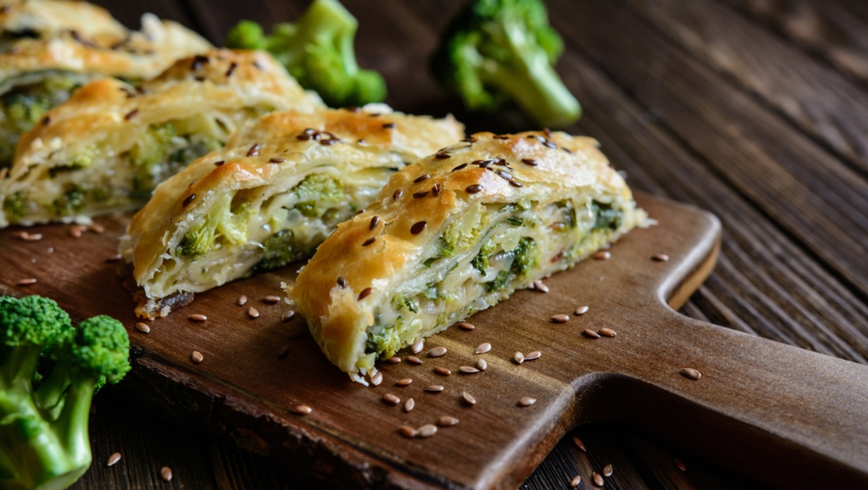 Δοκιμάστε την μπροκολόπιτα αντικαθιστώντας τα δυο προτεινόμενα τυριά με παρμεζάνα τριμμένη. Πασπαλίστε αν θέλετε την επιφάνεια με σουσάμι ή μαυροσούσαμο.Αν δεν ακολουθείτε vegetarian διατροφή μπορείτε να προσθέσετε 5 φέτες μπέικον ψιλοκομμένο, που θα σοτάρετε μαζί με το κραμμύδι και τα πράσα.