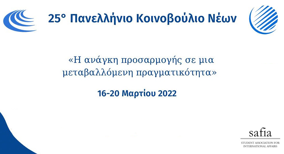 Το 25ο Πανελλήνιο Κοινοβούλιο Νέων (ΠΚΝ), ο θεσμός-ορόσημο του Οργανισμού SAFIA, επιστρέφει, λοιπόν, δυναμικά και θα πραγματοποιηθεί για πρώτη φορά μετά από δύο έτη δια ζώσης το διάστημα 16-20 Μαρτίου 2022!