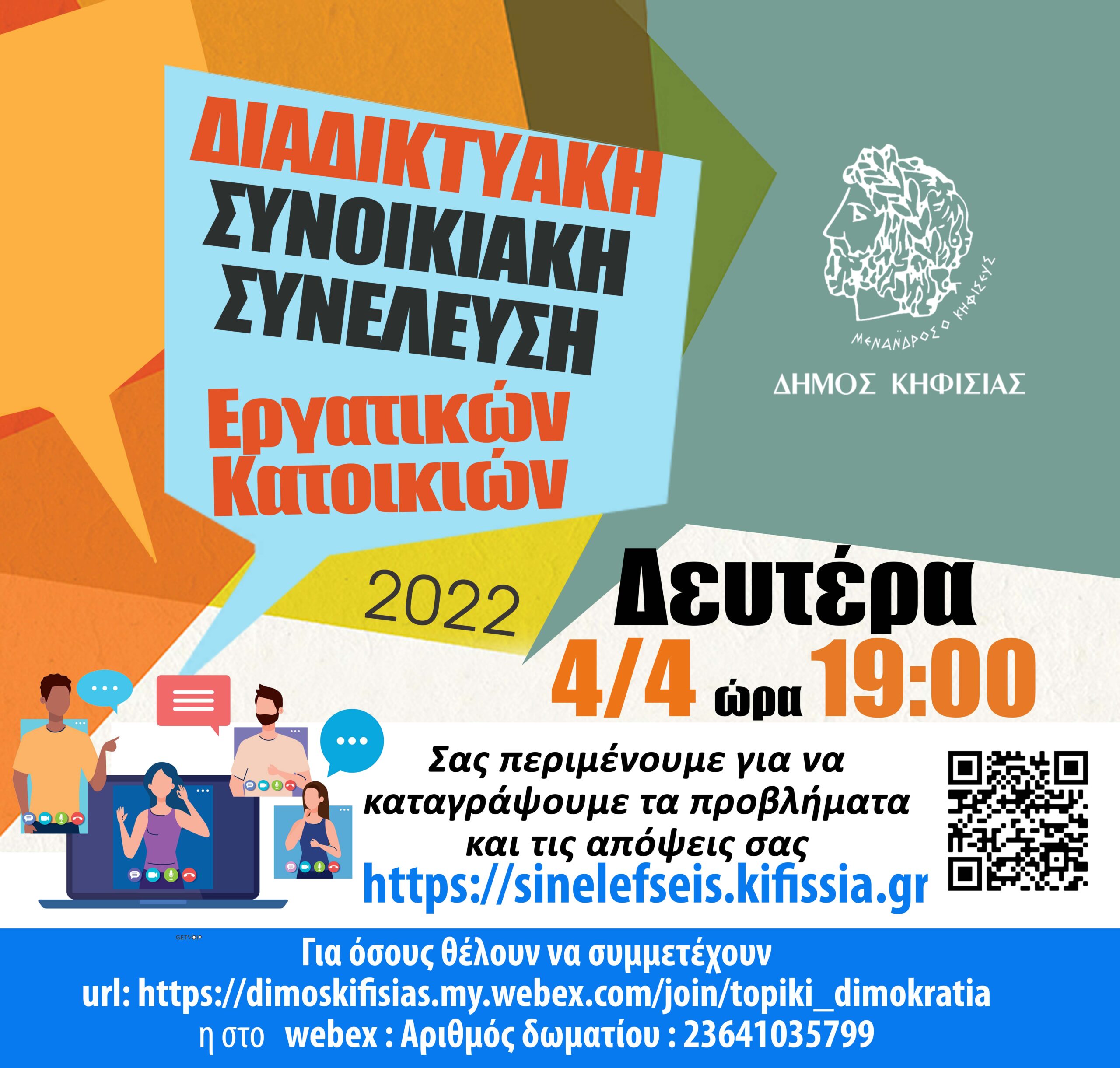 Συνεχίζονται οι Διαδικτυακές Συνοικιακές Συνελεύσεις στον Δήμο Κηφισιάς φυσική συνέχεια των πάνω από 150 συνελεύσεων στις γειτονιές του Δήμου.