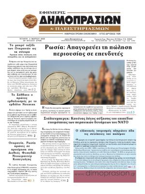 ΚεντρικήΚοινωνικάΠρωτοσέλιδα εφημερίδων by xristiana2 Μαρτίου 20222 Μαρτίου 20220497 Share00 2/3/2022 Πολιτικές ΑΥΓΗ ΔΗΜΟΚΡΑΤΙΑ ΕΛΕΥΘΕΡΗ ΩΡΑ ΕΛΕΥΘΕΡΟΣ ΤΥΠΟΣ ΕΣΤΙΑ ΚΑΘΗΜΕΡΙΝΗ Ο ΛΟΓΟΣ ΡΙΖΟΣΠΑΣΤΗΣ ΤΑ ΝΕΑ ΤΩΝ ΣΥΝΤΑΚΤΩΝ Οικονομικές ΕΦΗΜΕΡΙΣ ΔΗΜΟΠΡΑΣΙΩΝ ΚΑΙ ΠΛΕΙΣΤΗΡΙΑΣΜΩΝ ΗΧΩ ΔΗΜΟΠΡΑΣΙΩΝ ΝΑΥΤΕΜΠΟΡΙΚΗ Αθλητικές LIVE SPORT SPORTDAY SPORTIME ΠΡΩΤΑΘΛΗΤΗΣ ΦΩΣ ΤΩΝ ΣΠΟΡ ΩΡΑ ΓΙΑ ΣΠΟΡ Lifestyle ESPRESSO Θεσσαλονίκης ΤΥΠΟΣ ΘΕΣ/ΝΙΚΗΣ