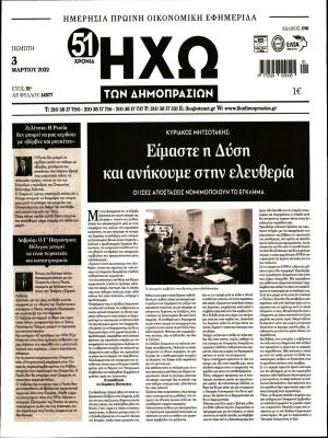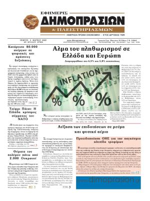 ΚεντρικήΚοινωνικάΠρωτοσέλιδα εφημερίδων by xristiana3 Μαρτίου 20223 Μαρτίου 20220377 Share00 3/3/2022 Πολιτικές ΑΥΓΗ ΔΗΜΟΚΡΑΤΙΑ ΕΛΕΥΘΕΡΗ ΩΡΑ ΕΛΕΥΘΕΡΟΣ ΤΥΠΟΣ ΕΣΤΙΑ ΚΑΘΗΜΕΡΙΝΗ Ο ΛΟΓΟΣ ΡΙΖΟΣΠΑΣΤΗΣ ΤΑ ΝΕΑ ΤΟ ΠΟΝΤΙΚΙ ΤΩΝ ΣΥΝΤΑΚΤΩΝ Οικονομικές DEAL NEWS ΕΦΗΜΕΡΙΣ ΔΗΜΟΠΡΑΣΙΩΝ ΚΑΙ ΠΛΕΙΣΤΗΡΙΑΣΜΩΝ ΗΧΩ ΔΗΜΟΠΡΑΣΙΩΝ ΝΑΥΤΕΜΠΟΡΙΚΗ Αθλητικές LIVE SPORT SPORTDAY SPORTIME ΠΡΩΤΑΘΛΗΤΗΣ ΦΩΣ ΤΩΝ ΣΠΟΡ ΩΡΑ ΓΙΑ ΣΠΟΡ Lifestyle ESPRESSO Free press ATHENS VOICE Θεσσαλονίκης ΤΥΠΟΣ ΘΕΣ/ΝΙΚΗΣ
