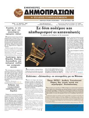 ΚεντρικήΚοινωνικάΠρωτοσέλιδα εφημερίδων by xristiana15 Μαρτίου 202215 Μαρτίου 20220380 Share00 15/3/2022 Πολιτικές ΑΥΓΗ ΔΗΜΟΚΡΑΤΙΑ ΕΛΕΥΘΕΡΗ ΩΡΑ ΕΛΕΥΘΕΡΟΣ ΤΥΠΟΣ ΕΣΤΙΑ ΚΑΘΗΜΕΡΙΝΗ Ο ΛΟΓΟΣ ΡΙΖΟΣΠΑΣΤΗΣ ΤΑ ΝΕΑ ΤΩΝ ΣΥΝΤΑΚΤΩΝ Οικονομικές ΕΦΗΜΕΡΙΣ ΔΗΜΟΠΡΑΣΙΩΝ ΚΑΙ ΠΛΕΙΣΤΗΡΙΑΣΜΩΝ ΗΧΩ ΔΗΜΟΠΡΑΣΙΩΝ ΝΑΥΤΕΜΠΟΡΙΚΗ Αθλητικές LIVE SPORT SPORTDAY SPORTIME ΠΡΟΓΝΩΣΠΟΡ ΠΡΩΤΑΘΛΗΤΗΣ ΦΩΣ ΤΩΝ ΣΠΟΡ ΩΡΑ ΓΙΑ ΣΠΟΡ Lifestyle ESPRESSO Θεσσαλονίκης ΤΥΠΟΣ ΘΕΣ/ΝΙΚΗΣ
