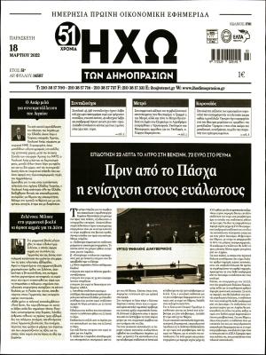ΚεντρικήΚοινωνικάΠρωτοσέλιδα εφημερίδων by xristiana18 Μαρτίου 202218 Μαρτίου 20220411 Share00 18/3/2022 Πολιτικές ΑΥΓΗ ΔΗΜΟΚΡΑΤΙΑ ΕΛΕΥΘΕΡΗ ΩΡΑ ΕΛΕΥΘΕΡΟΣ ΤΥΠΟΣ ΕΣΤΙΑ ΚΑΘΗΜΕΡΙΝΗ Ο ΛΟΓΟΣ ΡΙΖΟΣΠΑΣΤΗΣ ΤΑ ΝΕΑ ΤΩΝ ΣΥΝΤΑΚΤΩΝ Οικονομικές DEAL NEWS ΕΦΗΜΕΡΙΣ ΔΗΜΟΠΡΑΣΙΩΝ ΚΑΙ ΠΛΕΙΣΤΗΡΙΑΣΜΩΝ ΗΧΩ ΔΗΜΟΠΡΑΣΙΩΝ ΜΕΤΟΧΟΣ ΝΑΥΤΕΜΠΟΡΙΚΗ Αθλητικές LIVE SPORT SPORTDAY SPORTIME ΠΡΩΤΑΘΛΗΤΗΣ ΤΟ ΣΤΟΙΧΗΜΑ ΦΩΣ ΤΩΝ ΣΠΟΡ ΩΡΑ ΓΙΑ ΣΠΟΡ Lifestyle ESPRESSO Θεσσαλονίκης ΤΥΠΟΣ ΘΕΣ/ΝΙΚΗΣ