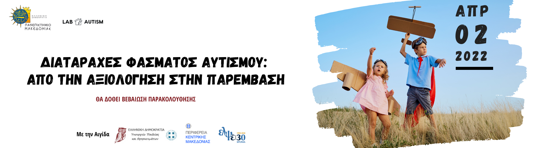 Σας καλωσορίζουμε στο Συνέδριο με τίτλο «Διαταραχές Φάσματος Αυτισμού: Από την Αξιολόγηση στην Παρέμβαση» που θα πραγματοποιηθεί διαδικτυακά στις 02 Απριλίου 2022.