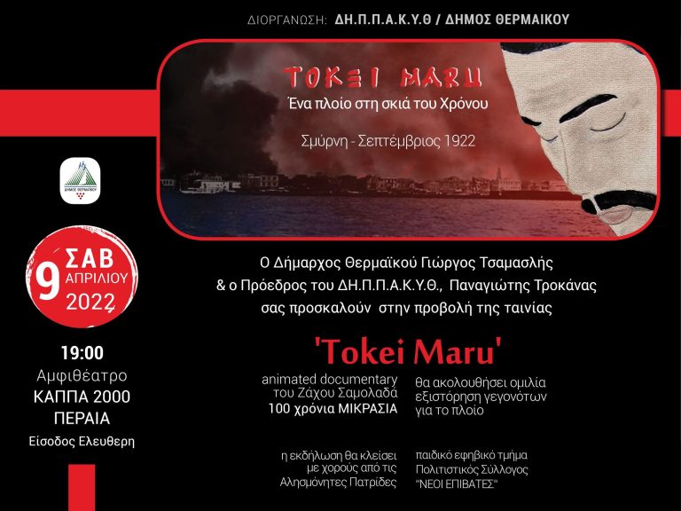 – Προβολή ταινίας τεκμηρίωσης με θέμα: Το Ιαπωνικό πλοίο «TOKEI MARU», διάρκειας 20’. Σκηνοθεσία και έρευνα Ζάχος Ζαμολαδάς.