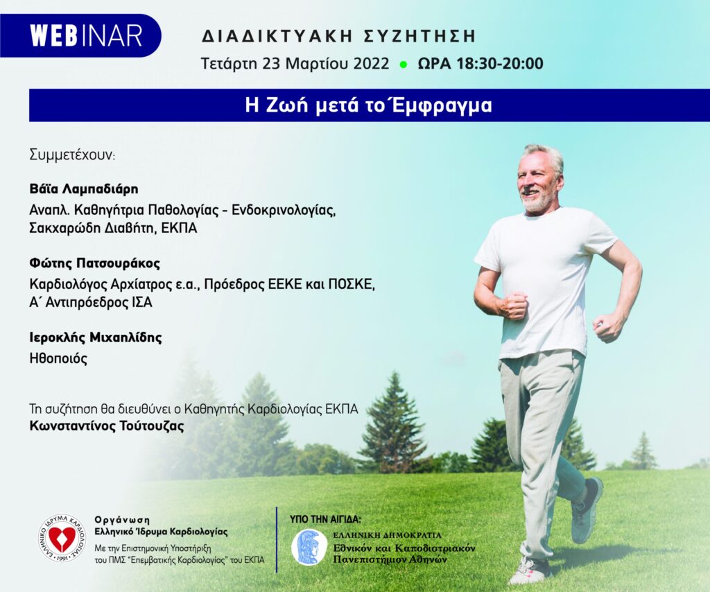 ΚεντρικήΚοινωνικάWebinar”Η ζωή μετά το Έμφραγμα” by xristiana13 Μαρτίου 202213 Μαρτίου 20220381 Share00 13/3/2022 Πηγή: https://www.elikar.gr
