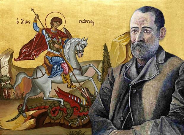 Κι εμένα, Άη μου Γιώργη, να μου συγχωρήσης το ευτελές και σχεδόν παιγνιώδες τούτον αρθρίδιον, συγκαταβαίνων εις την αδυναμίαν μου, καθώς συγκατέβης εις την απλοϊκότητα του παδίου παίζοντος τις αμάδες. Θεώρησόν με ως παιδίον τας φρένας, καίτοι άνδρα την ηλικίαν. Κι εγώ, όταν ήμην παιδίον, έπαιζα εγγύς του πενιχρού αλλ’ ευώδους ναίσκου σου παρά την θίνα της θαλάσσης, όπου ουδέν πλοίον δύναται να καθελκυσθή εκ του ναυπηγείου ή να εκπλεύση εκ του λιμένος, χωρίς να κλίνη την πρώραν προς τον ναίσκον σου να προσκυνήση, όπου οι στάχυες ριπιζόμενοι υπό βορεινής ριπής κλίνουσιν όλοι τα κορυφάς περιβάλλοντες ολόγυρα τον ιερόν ναόν σου, ως ικέται επαιτούντες τας ευλογίας σου, και όπου πελωρία η γηραιά ελαία νεύει τους κλώνας προς την γην, μη τολμώσα ν’ ανατείνη προς την ιεράν στέγην, όπου επισκιάζει η χάρις σου. Κι εμένα, Άη μ’ Γιώργη μ’ (επίτρεψόν μοι να σ’ εποκαλεσθώ με πλεονασμούς και με αποκοπάς ως νησιώτης εκ της βορειοανατολικής Ελλάδος), να μου συγχωρήσης την ανάμιξιν ταύτην του ιερού κι του βεβήλου, την συνθηκολογίαν ταύτην, τον νεωτερισμόν τούτον, αφού οι σημερινοί Έλληνές σου, οι απόγονοι εκείνων ους τοσάκις ευηργέτησες, αν τολμήσω να μεταγράψω ενταύθα εκ των αυθεντικών βιβλίων, τους υπερανθρώπους αγώνας, τα μικρά βασανιστήρια όσα υπέστης, σταγόνα προς σταγόνα σπείσας εις τον Σωτήρα Χριστόν το πολύτιμον αίμα σου, είναι ικανοί να κατακραυγάσωσι λέγοντες· “Τι παραμύθια μας διηγείται αυτός!”. Και οι σοφοί εξ αυτών δεν το έχουν διά τίποτε να είπουν, ότι είσαι ο Περσεύς ή ο Ηρακλής μετημφιεσμένος! Και οι εκλεκτοί εν αυτοίς μόνον δια χειρονομίας ή δια νεύματος θα συγκαταβώσι να διαμαρτυρηθώσι κατά των “αναχρονισμών” τούτων. Και οι όσιοι…α! οι πλείστοι των σημερινών οσίων, των επισήμων και μακροχειρίδων οσίων της Ελλάδος μας, αν ερωτηθώσι να είπωσι, προς φωτισμόν του ποιμνίου, πότε ήκμασες, θα δυσκολευθώσι ν’ απαντήσωσιν αν εμαρτύρησες επί Διοκλητιανού ή επί Δεκίου, αν υπήρξες προ Χριστού ή μετά Χριστόν! Αφού το έχουν ως εντροπήν των το ν’ αναγινώσκωσι κάποτε επ’ εκκλησίας τους βίους και τα μαρτύρια των αγίων! Τι χρειάζονται αυτά; Δεν είναι προτομότερον ν’ αναγινώσκωνται εν τη ώρα του Κοινωνικού, αι διακηρύξεις των δημάρχων, των εφόρων, και των επάρχων, περί φόρου οικοδομών, περί δηλώσεως των σικυώνων και περί…εκλογών;