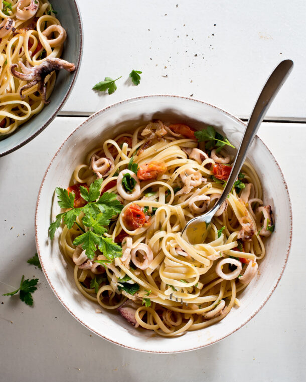 - 1 1⁄2 κιλό καλαμαράκια, σε λεπτές ροδέλες (φρέσκα ή κατεψυγμένα)