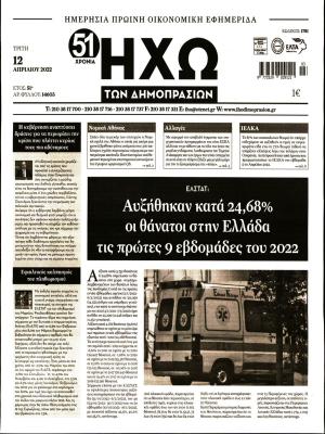ΚεντρικήΚοινωνικάΠρωτοσέλιδα εφημερίδων by xristiana12 Απριλίου 202212 Απριλίου 20220367 Share00 12/4/2022 Πολιτικές ΑΥΓΗ ΔΗΜΟΚΡΑΤΙΑ ΕΛΕΥΘΕΡΗ ΩΡΑ ΕΛΕΥΘΕΡΟΣ ΤΥΠΟΣ ΕΣΤΙΑ ΚΑΘΗΜΕΡΙΝΗ Ο ΛΟΓΟΣ ΡΙΖΟΣΠΑΣΤΗΣ ΤΑ ΝΕΑ ΤΩΝ ΣΥΝΤΑΚΤΩΝ Οικονομικές ΕΦΗΜΕΡΙΣ ΔΗΜΟΠΡΑΣΙΩΝ ΚΑΙ ΠΛΕΙΣΤΗΡΙΑΣΜΩΝ ΗΧΩ ΔΗΜΟΠΡΑΣΙΩΝ ΝΑΥΤΕΜΠΟΡΙΚΗ Αθλητικές LIVE SPORT SPORTDAY SPORTIME ΠΡΟΓΝΩΣΠΟΡ ΠΡΩΤΑΘΛΗΤΗΣ ΦΩΣ ΤΩΝ ΣΠΟΡ ΩΡΑ ΓΙΑ ΣΠΟΡ Lifestyle ESPRESSO Θεσσαλονίκης ΤΥΠΟΣ ΘΕΣ/ΝΙΚΗΣ