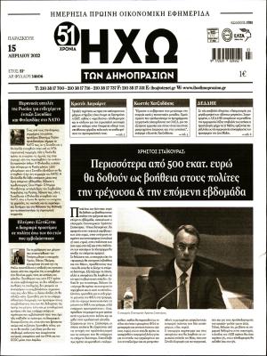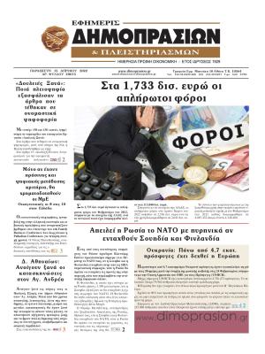 ΚεντρικήΚοινωνικάΠρωτοσέλιδα εφημερίδων by xristiana15 Απριλίου 202215 Απριλίου 20220368 Share00 15/4/2022 ΑΥΓΗ ΔΗΜΟΚΡΑΤΙΑ ΕΛΕΥΘΕΡΗ ΩΡΑ ΕΛΕΥΘΕΡΟΣ ΤΥΠΟΣ ΕΣΤΙΑ ΚΑΘΗΜΕΡΙΝΗ Ο ΛΟΓΟΣ ΡΙΖΟΣΠΑΣΤΗΣ ΤΑ ΝΕΑ ΤΩΝ ΣΥΝΤΑΚΤΩΝ Οικονομικές DEAL NEWS ΕΦΗΜΕΡΙΣ ΔΗΜΟΠΡΑΣΙΩΝ ΚΑΙ ΠΛΕΙΣΤΗΡΙΑΣΜΩΝ ΗΧΩ ΔΗΜΟΠΡΑΣΙΩΝ ΜΕΤΟΧΟΣ ΝΑΥΤΕΜΠΟΡΙΚΗ Αθλητικές LIVE SPORT SPORTDAY SPORTIME ΠΡΩΤΑΘΛΗΤΗΣ ΤΟ ΣΤΟΙΧΗΜΑ ΦΩΣ ΤΩΝ ΣΠΟΡ ΩΡΑ ΓΙΑ ΣΠΟΡ Lifestyle ESPRESSO Θεσσαλονίκης ΤΥΠΟΣ ΘΕΣ/ΝΙΚΗΣ