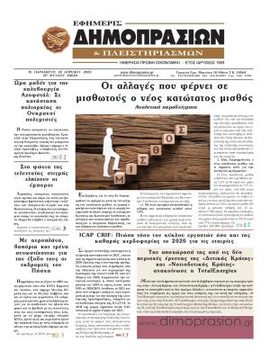 ΚεντρικήΚοινωνικάΠρωτοσέλιδα εφημερίδων by xristiana23 Απριλίου 202223 Απριλίου 20220402 Share00 23/4/2022 Πολιτικές REAL NEWS ΑΥΓΗ ΔΗΜΟΚΡΑΤΙΑ ΕΛΕΥΘΕΡΟΣ ΤΥΠΟΣ ΚΑΘΗΜΕΡΙΝΗ Ο ΛΟΓΟΣ ΠΡΩΤΟ ΘΕΜΑ ΡΙΖΟΣΠΑΣΤΗΣ ΤΟ ΒΗΜΑ ΤΟ ΠΑΡΟΝ Οικονομικές ΕΦΗΜΕΡΙΣ ΔΗΜΟΠΡΑΣΙΩΝ ΚΑΙ ΠΛΕΙΣΤΗΡΙΑΣΜΩΝ Αθλητικές LIVE SPORT SPORTDAY SPORTIME ΠΡΩΤΑΘΛΗΤΗΣ ΦΩΣ ΤΩΝ ΣΠΟΡ ΩΡΑ ΓΙΑ ΣΠΟΡ Lifestyle ESPRESSO Θεσσαλονίκης ΚΑΡΦΙΤΣΑ ΜΑΚΕΔΟΝΙΑ ΤΥΠΟΣ ΘΕΣ/ΝΙΚΗΣ
