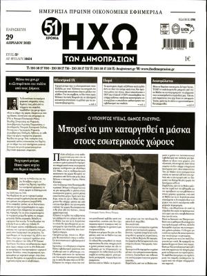ΚεντρικήΚοινωνικάΠρωτοσέλιδα εφημερίδων by xristiana29 Απριλίου 202229 Απριλίου 20220381 Share00 29/4/2022 Πολιτικές ΑΠΟΨΗ ΑΥΓΗ ΒΡΑΔΥΝΗ ΔΗΜΟΚΡΑΤΙΑ ΕΛΕΥΘΕΡΗ ΩΡΑ ΕΛΕΥΘΕΡΟΣ ΤΥΠΟΣ ΕΣΤΙΑ ΚΑΘΗΜΕΡΙΝΗ ΚΑΡΦΙ Ο ΛΟΓΟΣ ΠΑΡΑΠΟΛΙΤΙΚΑ ΡΙΖΟΣΠΑΣΤΗΣ ΤΑ ΝΕΑ ΤΩΝ ΣΥΝΤΑΚΤΩΝ Οικονομικές ΕΦΗΜΕΡΙΣ ΔΗΜΟΠΡΑΣΙΩΝ ΚΑΙ ΠΛΕΙΣΤΗΡΙΑΣΜΩΝ ΗΧΩ ΔΗΜΟΠΡΑΣΙΩΝ ΚΕΦΑΛΑΙΟ ΜΕΤΟΧΟΣ ΝΑΥΤΕΜΠΟΡΙΚΗ Αθλητικές LIVE SPORT SPORTDAY SPORTIME ΠΡΩΤΑΘΛΗΤΗΣ ΤΟ ΣΤΟΙΧΗΜΑ ΦΩΣ ΤΩΝ ΣΠΟΡ ΩΡΑ ΓΙΑ ΣΠΟΡ Lifestyle ESPRESSO Θεσσαλονίκης ΤΥΠΟΣ ΘΕΣ/ΝΙΚΗΣ