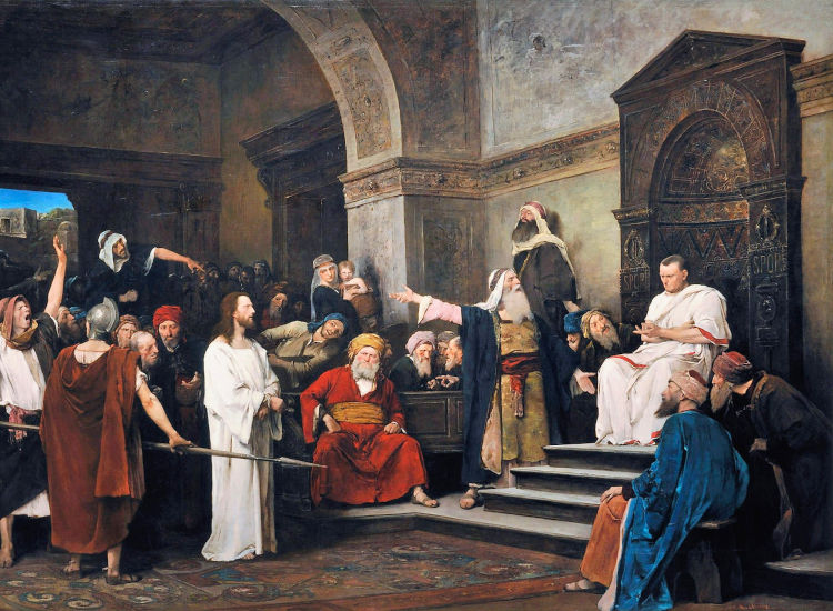 Παρότι ο Πιλάτος πείστηκε για την αθωότητά Του και τρεις φορές επιχείρησε να τον σώσει, «ιδών […] ότι οὐδὲν ωφελεί αλλὰ μάλλον θόρυβος γίνεται, λαβὼν ύδωρ απενίψατο τας χείρας απέναντι του όχλου, λέγων· Αθώος ειμί απὸ του αίματος τούτου· υμεῖς όψεσθε […] Τότε απέλυσε αυτοίς τον Βαραββάν, τον δε Ιησούν φραγγελώσας παρέδωκεν ίνα σταυρωθή» (Ματθ. κζ 24, 26).