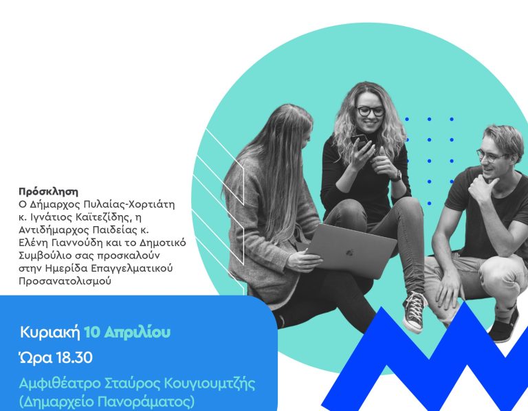 Ο Δήμος Πυλαίας-Χορτιάτη και η EMPLOY EDU προσκαλούν στην ανοιχτή εκδήλωση επαγγελματικού προσανατολισμού «Σπουδές & Επαγγέλματα: Από τις Πανελλαδικές στην Αγορά Εργασίας του Μέλλοντος», η οποία θα πραγματοποιηθεί την Κυριακή 10 Απριλίου στις 18.30 στο Αμφιθέατρο Σταύρος Κουγιουμτζής (Δημαρχείο Πανοράματος).