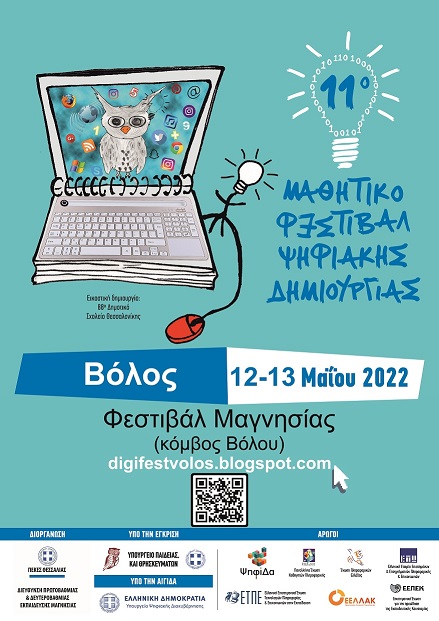 Για το σχολικό έτος 2021-2022, το 11ο Μαθητικό Φεστιβάλ Ψηφιακής Δημιουργίας θα διεξαχθεί σε υβριδική μορφή σε όλη την Ελλάδα και στις πόλεις: Άγιο Νικόλαο, Αγρίνιο, Αθήνα, Βόλο, Ηράκλειο, Ιωάννινα, Καλαμάτα, Καρδίτσα, Καστοριά, Κοζάνη, Λάρισα, Μυτιλήνη, Πάτρα, Πειραιά, Πύργο Ηλείας, Σύρο, Σπάρτη, Τρίκαλα, Τρίπολη και Χανιά, το διάστημα 10 έως και 14 Μαΐου 2022. Ειδικότερα για την Περιφερειακή Ενότητα Μαγνησίας (Βόλος) το 11ο Μαθητικό Φεστιβάλ Ψηφιακής Δημιουργίας θα πραγματοποιηθεί την Πέμπτη 12, την Παρασκευή 13 Μαΐου 2022 εξ αποστάσεως.