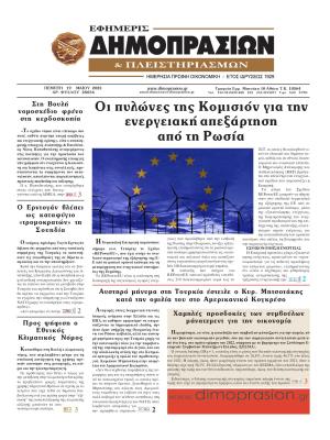 ΚεντρικήΚοινωνικάΠρωτοσέλιδα εφημερίδων by xristiana19 Μαΐου 202219 Μαΐου 20220366 Share00 19/5/2022 Πολιτικές ΑΥΓΗ ΔΗΜΟΚΡΑΤΙΑ ΕΛΕΥΘΕΡΗ ΩΡΑ ΕΛΕΥΘΕΡΟΣ ΤΥΠΟΣ ΕΣΤΙΑ ΚΑΘΗΜΕΡΙΝΗ Ο ΛΟΓΟΣ ΡΙΖΟΣΠΑΣΤΗΣ ΤΑ ΝΕΑ ΤΟ ΠΟΝΤΙΚΙ ΤΩΝ ΣΥΝΤΑΚΤΩΝ Οικονομικές ΕΦΗΜΕΡΙΣ ΔΗΜΟΠΡΑΣΙΩΝ ΚΑΙ ΠΛΕΙΣΤΗΡΙΑΣΜΩΝ ΗΧΩ ΔΗΜΟΠΡΑΣΙΩΝ ΝΑΥΤΕΜΠΟΡΙΚΗ Αθλητικές LIVE SPORT SPORTDAY SPORTIME ΠΡΩΤΑΘΛΗΤΗΣ ΦΩΣ ΤΩΝ ΣΠΟΡ ΩΡΑ ΓΙΑ ΣΠΟΡ Lifestyle ESPRESSO Free press ATHENS VOICE Θεσσαλονίκης ΤΥΠΟΣ ΘΕΣ/ΝΙΚΗΣ