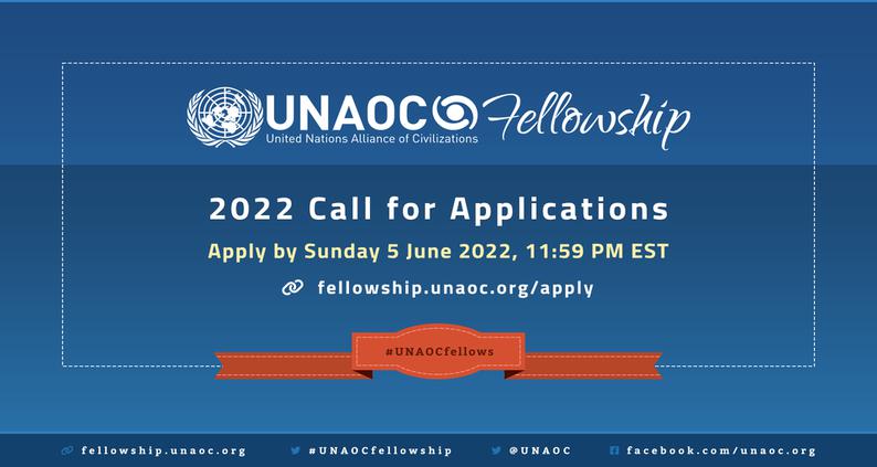Η Συμμαχία Πολιτισμών των Ηνωμένων Εθνών (UNAOC) δέχεται αιτήσεις για το εμβληματικό της Fellowship (2022), μια πλατφόρμα διαπολιτισμικών ανταλλαγών για νέους ηγέτες και επαγγελματίες από την Ευρώπη, τη Βόρεια Αμερική (EUNA), τη Μέση Ανατολή και τη Βόρεια Αφρική (MENA).
