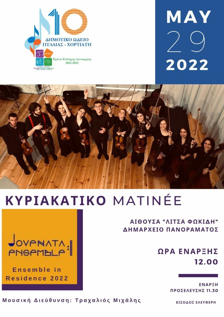 Το σύνολο εγχόρδων Jovenata Ensemble που για το έτος 2022-2023 είναι Ensemble in Residence του Δημοτικού Ωδείου της ΚΕΠΑΠ του Δήμου Πυλαίας Χορτιάτη, θα παρουσιάσει ένα πρόγραμμα κλασικής μουσικής στο πλαίσιο του κύκλου συναυλιών «Κυριακάτικα matinée»