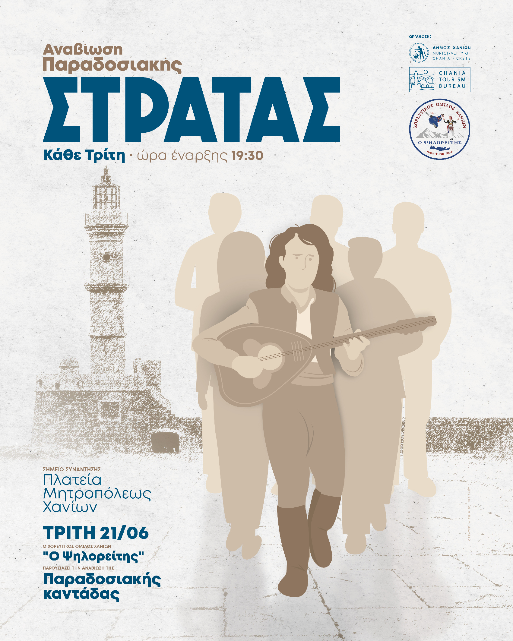 Η αναβίωση της «Παραδοσιακής Στράτας», το παραδοσιακό μουσικοχορευτικό δρώμενο, στους δρόμους των Χανίων, ανακοινώθηκε από τον Δήμο Χανίων, σε Συνέντευξη Τύπου που πραγματοποιήθηκε στον εκθεσιακό χώρο του Κέντρου Αρχιτεκτονικής της Μεσογείου.