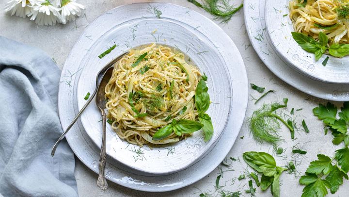 Τέλος, πρόσθεσε τα στραγγισμένα μακαρόνια, ανακάτεψε και γαρνίρισε με βασιλικό και παρμεζάνα. Είναι έτοιμα!