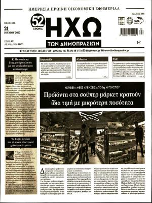 ΚεντρικήΚοινωνικάΠρωτοσέλιδα εφημερίδων by xristiana21 Ιουλίου 202221 Ιουλίου 20220438 Share00 21/7/2022 Πολιτικές ΑΥΓΗ ΔΗΜΟΚΡΑΤΙΑ ΕΛΕΥΘΕΡΗ ΩΡΑ ΕΛΕΥΘΕΡΟΣ ΤΥΠΟΣ ΕΣΤΙΑ ΚΑΘΗΜΕΡΙΝΗ Ο ΛΟΓΟΣ ΡΙΖΟΣΠΑΣΤΗΣ ΤΑ ΝΕΑ ΤΟ ΠΟΝΤΙΚΙ ΤΩΝ ΣΥΝΤΑΚΤΩΝ Οικονομικές ΕΦΗΜΕΡΙΣ ΔΗΜΟΠΡΑΣΙΩΝ ΚΑΙ ΠΛΕΙΣΤΗΡΙΑΣΜΩΝ ΗΧΩ ΔΗΜΟΠΡΑΣΙΩΝ ΝΑΥΤΕΜΠΟΡΙΚΗ Αθλητικές LIVE SPORT SPORTDAY SPORTIME ΠΡΩΤΑΘΛΗΤΗΣ ΦΩΣ ΤΩΝ ΣΠΟΡ ΩΡΑ ΓΙΑ ΣΠΟΡ Lifestyle ESPRESSO Free press ATHENS VOICE Θεσσαλονίκης ΤΥΠΟΣ ΘΕΣ/ΝΙΚΗΣ