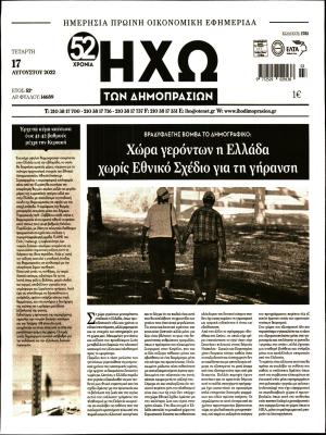 ΚεντρικήΚοινωνικάΠρωτοσέλιδα εφημερίδων by xristiana17 Αυγούστου 202217 Αυγούστου 20220456 Share00 17/8/2022 Πολιτικές ΑΥΓΗ ΔΗΜΟΚΡΑΤΙΑ ΕΛΕΥΘΕΡΗ ΩΡΑ ΕΛΕΥΘΕΡΟΣ ΤΥΠΟΣ ΕΣΤΙΑ ΚΑΘΗΜΕΡΙΝΗ Ο ΛΟΓΟΣ ΡΙΖΟΣΠΑΣΤΗΣ ΤΑ ΝΕΑ ΤΩΝ ΣΥΝΤΑΚΤΩΝ Οικονομικές ΕΦΗΜΕΡΙΣ ΔΗΜΟΠΡΑΣΙΩΝ ΚΑΙ ΠΛΕΙΣΤΗΡΙΑΣΜΩΝ ΗΧΩ ΔΗΜΟΠΡΑΣΙΩΝ ΝΑΥΤΕΜΠΟΡΙΚΗ Αθλητικές LIVE SPORT SPORTDAY SPORTIME ΠΡΩΤΑΘΛΗΤΗΣ ΦΩΣ ΤΩΝ ΣΠΟΡ ΩΡΑ ΓΙΑ ΣΠΟΡ Lifestyle ESPRESSO Θεσσαλονίκης ΤΥΠΟΣ ΘΕΣ/ΝΙΚΗΣ