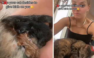 Μία γάτα έχει γίνει viral στο TikTok σε ένα βίντεο που έχει συγκεντρώσει περισσότερες από 4,9 εκατομμύρια προβολές, καθώς κουρνιάζει στα πόδια της ιδιοκτήτριας της και στη συνέχεια αρχίζει να γεννά τα γατάκια της.