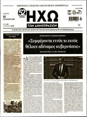 ΚεντρικήΚοινωνικάΠρωτοσέλιδα εφημερίδων by xristiana27 Αυγούστου 202227 Αυγούστου 20220331 Share00 27/8/2022 Πολιτικές ΑΠΟΨΗ ΑΥΓΗ ΒΡΑΔΥΝΗ ΔΗΜΟΚΡΑΤΙΑ ΕΛΕΥΘΕΡΗ ΩΡΑ ΕΛΕΥΘΕΡΟΣ ΤΥΠΟΣ ΕΣΤΙΑ ΚΑΘΗΜΕΡΙΝΗ ΚΑΡΦΙ Ο ΛΟΓΟΣ ΠΑΡΑΠΟΛΙΤΙΚΑ ΡΙΖΟΣΠΑΣΤΗΣ ΤΑ ΝΕΑ ΤΩΝ ΣΥΝΤΑΚΤΩΝ Οικονομικές ΕΦΗΜΕΡΙΣ ΔΗΜΟΠΡΑΣΙΩΝ ΚΑΙ ΠΛΕΙΣΤΗΡΙΑΣΜΩΝ ΗΧΩ ΔΗΜΟΠΡΑΣΙΩΝ ΚΕΦΑΛΑΙΟ ΝΑΥΤΕΜΠΟΡΙΚΗ Αθλητικές LIVE SPORT SPORTDAY SPORTIME ΠΡΩΤΑΘΛΗΤΗΣ ΦΩΣ ΤΩΝ ΣΠΟΡ ΩΡΑ ΓΙΑ ΣΠΟΡ Lifestyle ESPRESSO Θεσσαλονίκης ΚΑΡΦΙΤΣΑ ΤΥΠΟΣ ΘΕΣ/ΝΙΚΗΣ