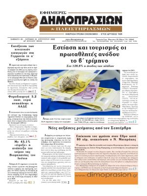 ΚεντρικήΚοινωνικάΠρωτοσέλιδα εφημερίδων by xristiana22 Αυγούστου 202222 Αυγούστου 20220350 Share00 22/8/2022 Πολιτικές ΔΗΜΟΚΡΑΤΙΑ ΕΛΕΥΘΕΡΗ ΩΡΑ ΕΛΕΥΘΕΡΟΣ ΤΥΠΟΣ ΕΣΤΙΑ ΤΑ ΝΕΑ ΤΩΝ ΣΥΝΤΑΚΤΩΝ Οικονομικές ΕΦΗΜΕΡΙΣ ΔΗΜΟΠΡΑΣΙΩΝ ΚΑΙ ΠΛΕΙΣΤΗΡΙΑΣΜΩΝ ΝΑΥΤΕΜΠΟΡΙΚΗ Αθλητικές LIVE SPORT SPORTDAY SPORTIME ΠΡΩΤΑΘΛΗΤΗΣ ΦΩΣ ΤΩΝ ΣΠΟΡ ΩΡΑ ΓΙΑ ΣΠΟΡ Lifestyle ESPRESSO