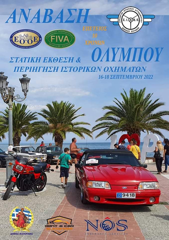 Το χρώμα, το κλίμα και την κομψότητα μιας άλλης εποχής αναμένεται να μεταφέρουν στην Παραλία Κατερίνης, το Σάββατο 17 και την Κυριακή 18 Σεπτεμβρίου, ιστορικά οχήματα. Ο λόγος για την 10η «ΑΝΑΒΑΣΗ ΟΛΥΜΠΟΥ» και την Στατική Έκθεση – Περιήγηση των συγκεκριμένων κλασικών πλέον οχημάτων. Την ευθύνη της διοργάνωσης στην πόλη, έχουν ο ΣΙΑΒΕ – Σύλλογος Ιστορικού Αυτοκινήτου Βορείου Ελλάδος – SIAVE, ο Δήμος Κατερίνης και ο Οργανισμός Πολιτισμού (ΟΠΠΑΠ), σε συνεργασία με την Ελληνική Ομοσπονδία και τη Διεθνή Ένωση Οχημάτων Εποχής.