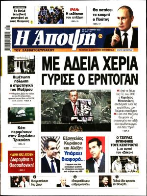 ΚεντρικήΚοινωνικάΠρωτοσέλιδα εφημερίδων by xristiana24 Σεπτεμβρίου 202224 Σεπτεμβρίου 20220348 Share00 24/9/2022 Πολιτικές ΑΠΟΨΗ ΑΥΓΗ ΒΡΑΔΥΝΗ ΔΗΜΟΚΡΑΤΙΑ ΕΛΕΥΘΕΡΗ ΩΡΑ ΕΛΕΥΘΕΡΟΣ ΤΥΠΟΣ ΕΣΤΙΑ ΚΑΘΗΜΕΡΙΝΗ ΚΑΡΦΙ Ο ΛΟΓΟΣ ΠΑΡΑΠΟΛΙΤΙΚΑ ΡΙΖΟΣΠΑΣΤΗΣ ΤΑ ΝΕΑ ΤΩΝ ΣΥΝΤΑΚΤΩΝ Οικονομικές ΕΦΗΜΕΡΙΣ ΔΗΜΟΠΡΑΣΙΩΝ ΚΑΙ ΠΛΕΙΣΤΗΡΙΑΣΜΩΝ ΗΧΩ ΔΗΜΟΠΡΑΣΙΩΝ ΚΕΦΑΛΑΙΟ ΝΑΥΤΕΜΠΟΡΙΚΗ Αθλητικές LIVE SPORT SPORTDAY SPORTIME ΠΡΩΤΑΘΛΗΤΗΣ ΦΩΣ ΤΩΝ ΣΠΟΡ ΩΡΑ ΓΙΑ ΣΠΟΡ Lifestyle ESPRESSO Θεσσαλονίκης ΚΑΡΦΙΤΣΑ ΤΥΠΟΣ ΘΕΣ/ΝΙΚΗΣ
