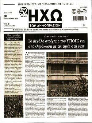 ΚεντρικήΚοινωνικάΠρωτοσέλιδα εφημερίδων by xristiana30 Σεπτεμβρίου 20222 Οκτωβρίου 20220342 Share00 30/9/2022 Πολιτικές ΑΥΓΗ ΔΗΜΟΚΡΑΤΙΑ ΕΛΕΥΘΕΡΗ ΩΡΑ ΕΛΕΥΘΕΡΟΣ ΤΥΠΟΣ ΕΣΤΙΑ ΚΑΘΗΜΕΡΙΝΗ Ο ΛΟΓΟΣ ΡΙΖΟΣΠΑΣΤΗΣ ΤΑ ΝΕΑ ΤΩΝ ΣΥΝΤΑΚΤΩΝ Οικονομικές DEAL NEWS ΕΦΗΜΕΡΙΣ ΔΗΜΟΠΡΑΣΙΩΝ ΚΑΙ ΠΛΕΙΣΤΗΡΙΑΣΜΩΝ ΗΧΩ ΔΗΜΟΠΡΑΣΙΩΝ ΜΕΤΟΧΟΣ ΝΑΥΤΕΜΠΟΡΙΚΗ Αθλητικές LIVE SPORT SPORTDAY SPORTIME ΠΡΩΤΑΘΛΗΤΗΣ ΤΟ ΣΤΟΙΧΗΜΑ ΦΩΣ ΤΩΝ ΣΠΟΡ ΩΡΑ ΓΙΑ ΣΠΟΡ Lifestyle ESPRESSO Θεσσαλονίκης ΤΥΠΟΣ ΘΕΣ/ΝΙΚΗΣ
