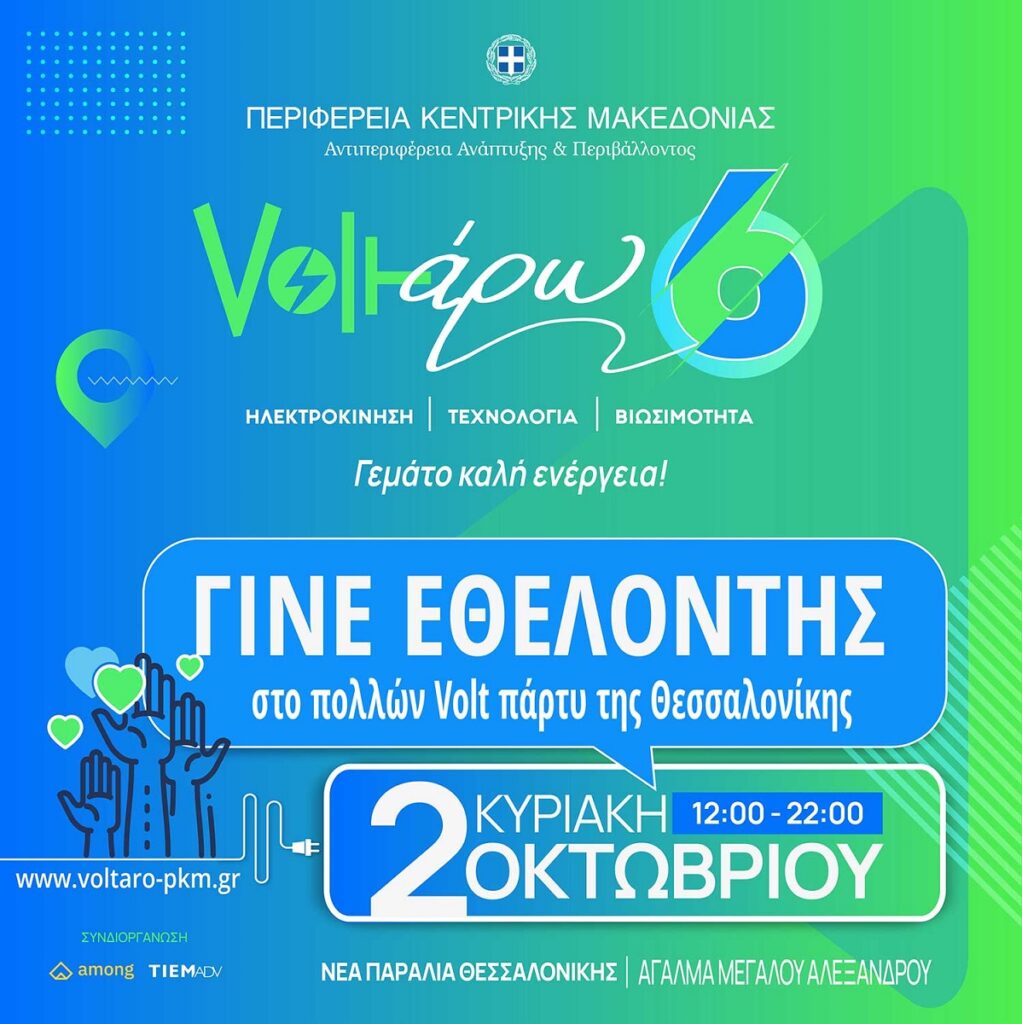 Γίνε εθελοντής στο πολλών Voltπάρτυ της Θεσσαλονίκης που θα διεξαχθεί την Κυριακή 2 Οκτωβρίου στο Άγαλμα του Μ. Αλεξάνδρου.