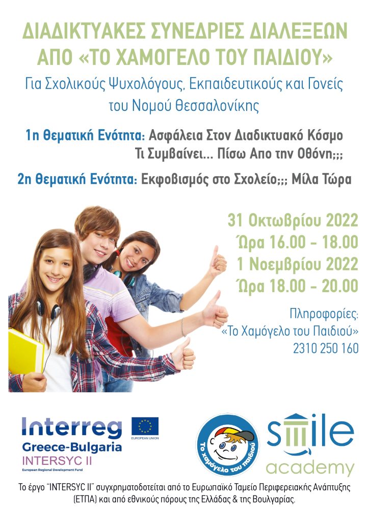 ΚεντρικήΚοινωνικάΔωρεάν Διαδικτυακές Συνεδρίες Διαλέξεων Από «Το Χαμόγελο Του Παιδιού» Για Σχολικούς Ψυχολόγους, Εκπαιδευτικούς Και Γονείς Του Νομού Θεσσαλονίκης by xristiana31 Οκτωβρίου 202231 Οκτωβρίου 20220329 Share00 31/10/2022