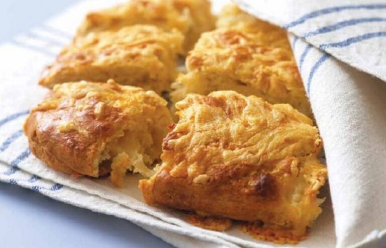 - Χαράζετε την πίτα σε κομμάτια με σχήμα τετραγώνου, χτυπάτε τα αυγά με το γάλα, λίγο αλάτι και το υπόλοιπο λάδι, τα ρίχνετε στην πίτα και τη βάζετε αμέσως στο φούρνο να ψηθεί για 50’ – 55’ στους 200 °C, μέχρι να φουσκώσει και να ροδίσει.