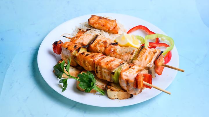 Ψήνετε τα σουβλάκια στη σχάρα ή στον φούρνο μέχρι να ροδοκοκκινίσουν.