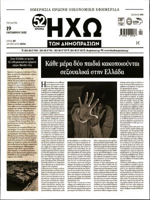 ΚεντρικήΚοινωνικάΠρωτοσέλιδα εφημερίδων by xristiana19 Οκτωβρίου 202219 Οκτωβρίου 20220354 Share00 19/10/2022 Πολιτικές ΑΥΓΗ ΔΗΜΟΚΡΑΤΙΑ ΕΛΕΥΘΕΡΗ ΩΡΑ ΕΛΕΥΘΕΡΟΣ ΤΥΠΟΣ ΕΣΤΙΑ ΚΑΘΗΜΕΡΙΝΗ Ο ΛΟΓΟΣ ΡΙΖΟΣΠΑΣΤΗΣ ΤΑ ΝΕΑ ΤΩΝ ΣΥΝΤΑΚΤΩΝ Οικονομικές ΕΦΗΜΕΡΙΣ ΔΗΜΟΠΡΑΣΙΩΝ ΚΑΙ ΠΛΕΙΣΤΗΡΙΑΣΜΩΝ ΗΧΩ ΔΗΜΟΠΡΑΣΙΩΝ ΝΑΥΤΕΜΠΟΡΙΚΗ Αθλητικές LIVE SPORT SPORTDAY SPORTIME ΠΡΩΤΑΘΛΗΤΗΣ ΦΩΣ ΤΩΝ ΣΠΟΡ ΩΡΑ ΓΙΑ ΣΠΟΡ Lifestyle ESPRESSO Θεσσαλονίκης ΤΥΠΟΣ ΘΕΣ/ΝΙΚΗΣ