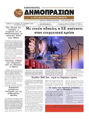 ΚεντρικήΚοινωνικάΠρωτοσέλιδα εφημερίδων by xristiana24 Οκτωβρίου 202224 Οκτωβρίου 20220382 Share00 24/10/2022 Πολιτικές ΔΗΜΟΚΡΑΤΙΑ ΕΛΕΥΘΕΡΗ ΩΡΑ ΕΛΕΥΘΕΡΟΣ ΤΥΠΟΣ ΕΣΤΙΑ ΤΑ ΝΕΑ ΤΩΝ ΣΥΝΤΑΚΤΩΝ Οικονομικές ΕΦΗΜΕΡΙΣ ΔΗΜΟΠΡΑΣΙΩΝ ΚΑΙ ΠΛΕΙΣΤΗΡΙΑΣΜΩΝ ΝΑΥΤΕΜΠΟΡΙΚΗ Αθλητικές LIVE SPORT SPORTDAY SPORTIME ΠΡΩΤΑΘΛΗΤΗΣ ΦΩΣ ΤΩΝ ΣΠΟΡ ΩΡΑ ΓΙΑ ΣΠΟΡ Lifestyle ESPRESSO