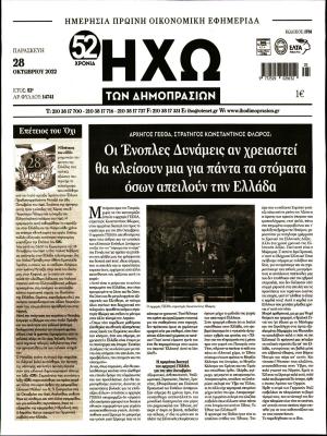 ΚεντρικήΚοινωνικάΠρωτοσέλιδα εφημερίδων by xristiana28 Οκτωβρίου 202228 Οκτωβρίου 20220528 Share00 28/10/2022 Πολιτικές ΑΥΓΗ ΒΡΑΔΥΝΗ ΚΑΘΗΜΕΡΙΝΗ Ο ΛΟΓΟΣ ΡΙΖΟΣΠΑΣΤΗΣ Οικονομικές ΕΦΗΜΕΡΙΣ ΔΗΜΟΠΡΑΣΙΩΝ ΚΑΙ ΠΛΕΙΣΤΗΡΙΑΣΜΩΝ ΗΧΩ ΔΗΜΟΠΡΑΣΙΩΝ Αθλητικές LIVE SPORT SPORTDAY SPORTIME ΠΡΩΤΑΘΛΗΤΗΣ ΦΩΣ ΤΩΝ ΣΠΟΡ ΩΡΑ ΓΙΑ ΣΠΟΡ Θεσσαλονίκης ΤΥΠΟΣ ΘΕΣ/ΝΙΚΗΣ