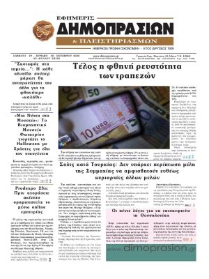 ΚεντρικήΚοινωνικάΠρωτοσέλιδα εφημερίδων by xristiana31 Οκτωβρίου 202231 Οκτωβρίου 20220400 Share00 31/10/2022 Πολιτικές ΔΗΜΟΚΡΑΤΙΑ ΕΛΕΥΘΕΡΗ ΩΡΑ ΕΛΕΥΘΕΡΟΣ ΤΥΠΟΣ ΕΣΤΙΑ ΤΑ ΝΕΑ ΤΩΝ ΣΥΝΤΑΚΤΩΝ Οικονομικές ΕΦΗΜΕΡΙΣ ΔΗΜΟΠΡΑΣΙΩΝ ΚΑΙ ΠΛΕΙΣΤΗΡΙΑΣΜΩΝ ΝΑΥΤΕΜΠΟΡΙΚΗ Αθλητικές LIVE SPORT SPORTDAY SPORTIME ΠΡΩΤΑΘΛΗΤΗΣ ΦΩΣ ΤΩΝ ΣΠΟΡ ΩΡΑ ΓΙΑ ΣΠΟΡ Lifestyle ESPRESSO